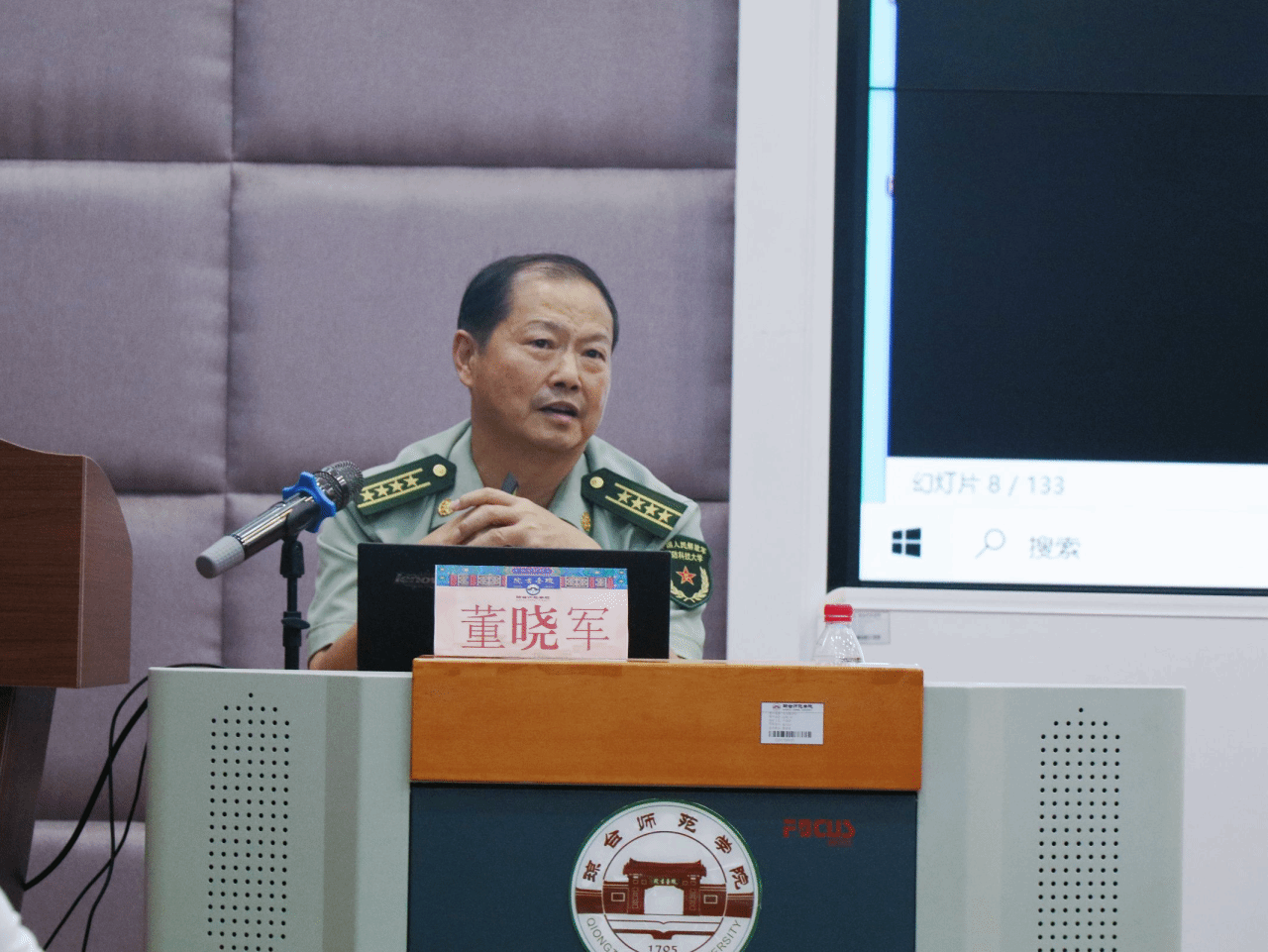 本次讲座中,董晓军分别从国际战略格局概述、中国周边地缘环境的特点、中国面临的主要安全威胁以及我们应采取的应对措施等核心内容展开。他分析了多极化、全球化、信息化等趋势对国际关系和当前国际战略格局的影响;详细解析了中国所处的地理环境、政治经济关系以及文化交流等多方面的周边地缘环境特点;重点分析了中国所面临的包括传统安全威胁及非传统安全威胁;提出了加强国防建设、提升军事能力、加强国际合作等应对措施。